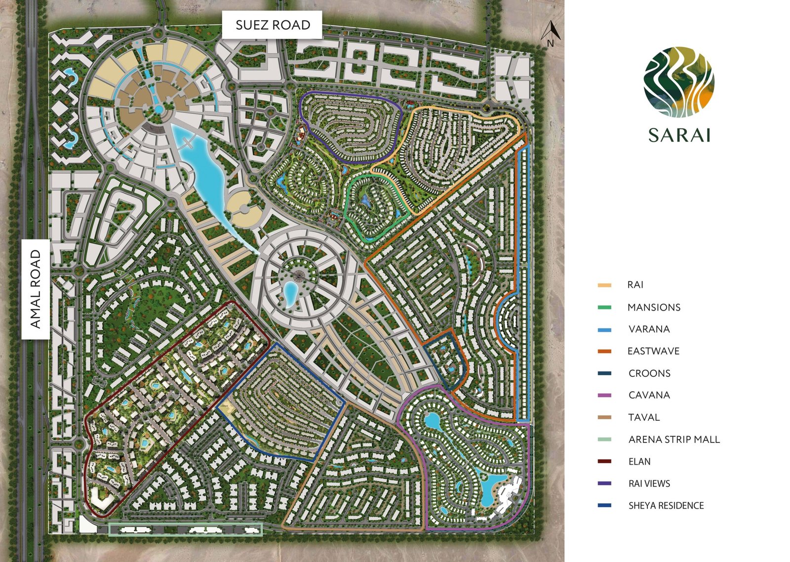 Sarai is a huge project with many phases such as esse, Rai Valleys, Sheya Residence, Rai Views, Elan, Rai, Varana, Cavana Springs, Arena Strip Mall, Taval, and EastWave.